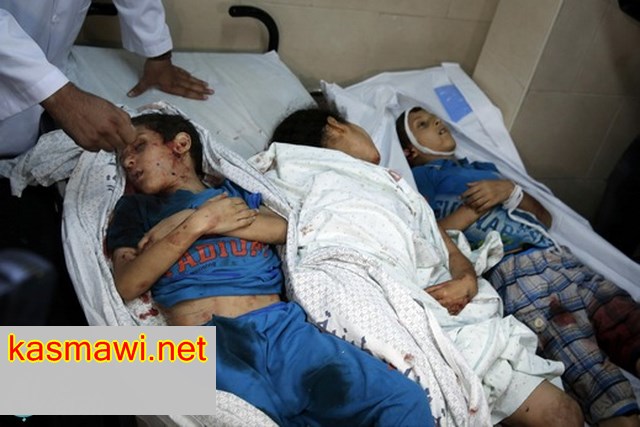 أشارت مصادر صحفية فلسطينية اليوم الخميس أن "ثلاثة مواطنون من عائلة واحدة إستشهدوا مساء اليوم الخميس، أحدهم طفل يبلغ من العمر عامين جراء اطلاق القذائف المدفعية على حي الشجاعية شرق غزة. والشهداء هم: عبد علي مطير ومحمد شادي مطير ومحمد سالم مطير". ومصادر فلسطينية أخرى أشارت الى أن " المواطن حمزة العبادلة استشهد في قصف على خانيونس جنوب القطاع، مساء اليوم. وقد استشهد 3 اطفال في غارة على منزل عائلة شحبير بحي الصبرة جنوب مدينة غزة، مساء اليوم الخميس، يرفع حصيلة العدوان الى 237 شهيدا و 1770 جريح. والشهداء الاطفال هم، الشهيدة فلة طارق شحيبر، والاخوين الشهيدين جهاد ووسيم عصام شحيبر. كما واستشهدت الطفلة رهف خليل الجبور 4 سنوات جراء قصف الاحتلال على مدينة خان يونس حي المنارة، والطفل ياسين الحميدي 4 سنوات من مدينة غزة متأثرا بجراحه. واستهدف الطيران الحربي منزلا يعود لعائلة أبو طه بمنطقة حي الجنينة شر رفح دون اصابات". .jpg)