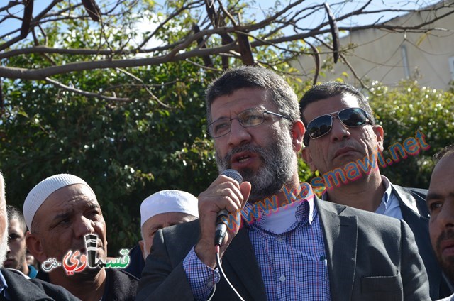 بعد ذلك تحدث خال الشاب المغدور الشيخ صفوت فريج رئيس الحركة الاسلامية حيث قال اسمحوا لي بدية ان اتقدم بالشكر الى كل اهلنا في كفرقاسم على هذا الدعم الجياش المواسي . بعد ذلك تطرق في كلمته الى ثلاثة رسائل :